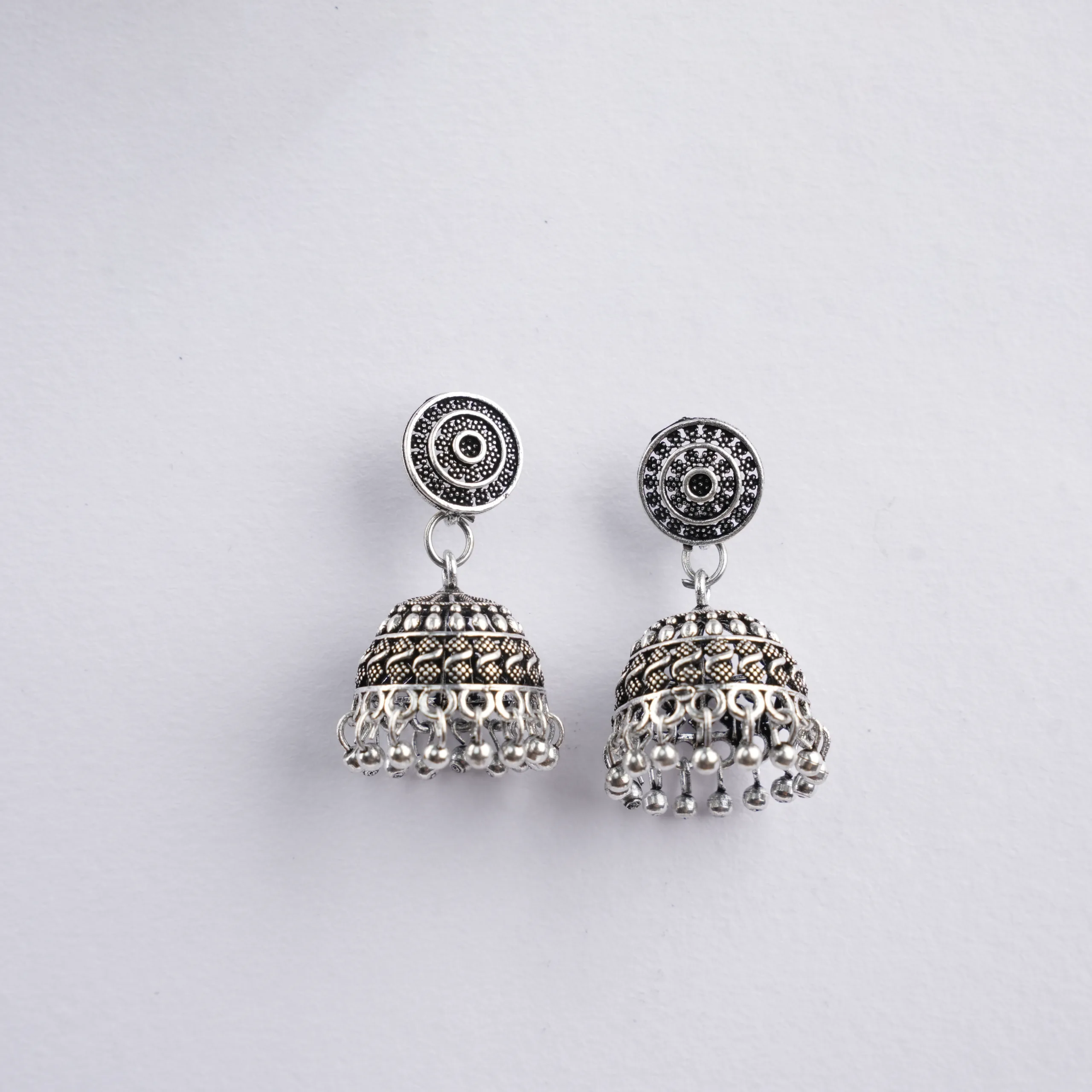 Oxidised Silver-Plated Traditional Jhumka Earrings